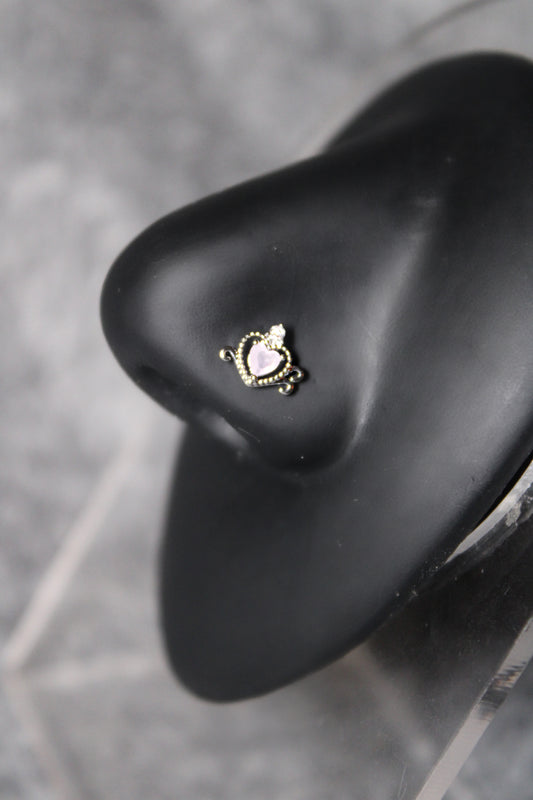 Pink Empress Heart Nose Ring (Gold)