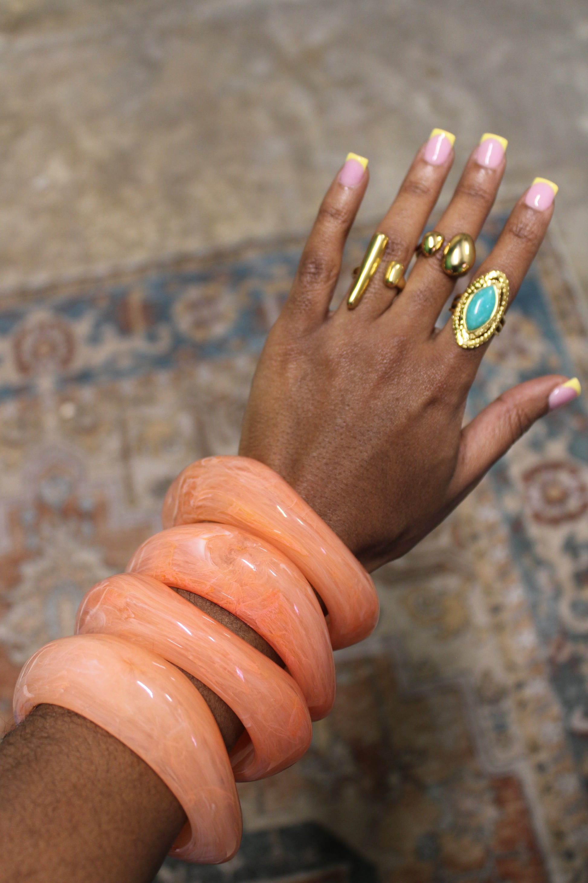 The Island Blush bangle brings a gentle pop of color that’s both feminine and effortless. Its smooth finish and warm undertone make it easy to wear alone or stacked with bolder pieces for contrast.