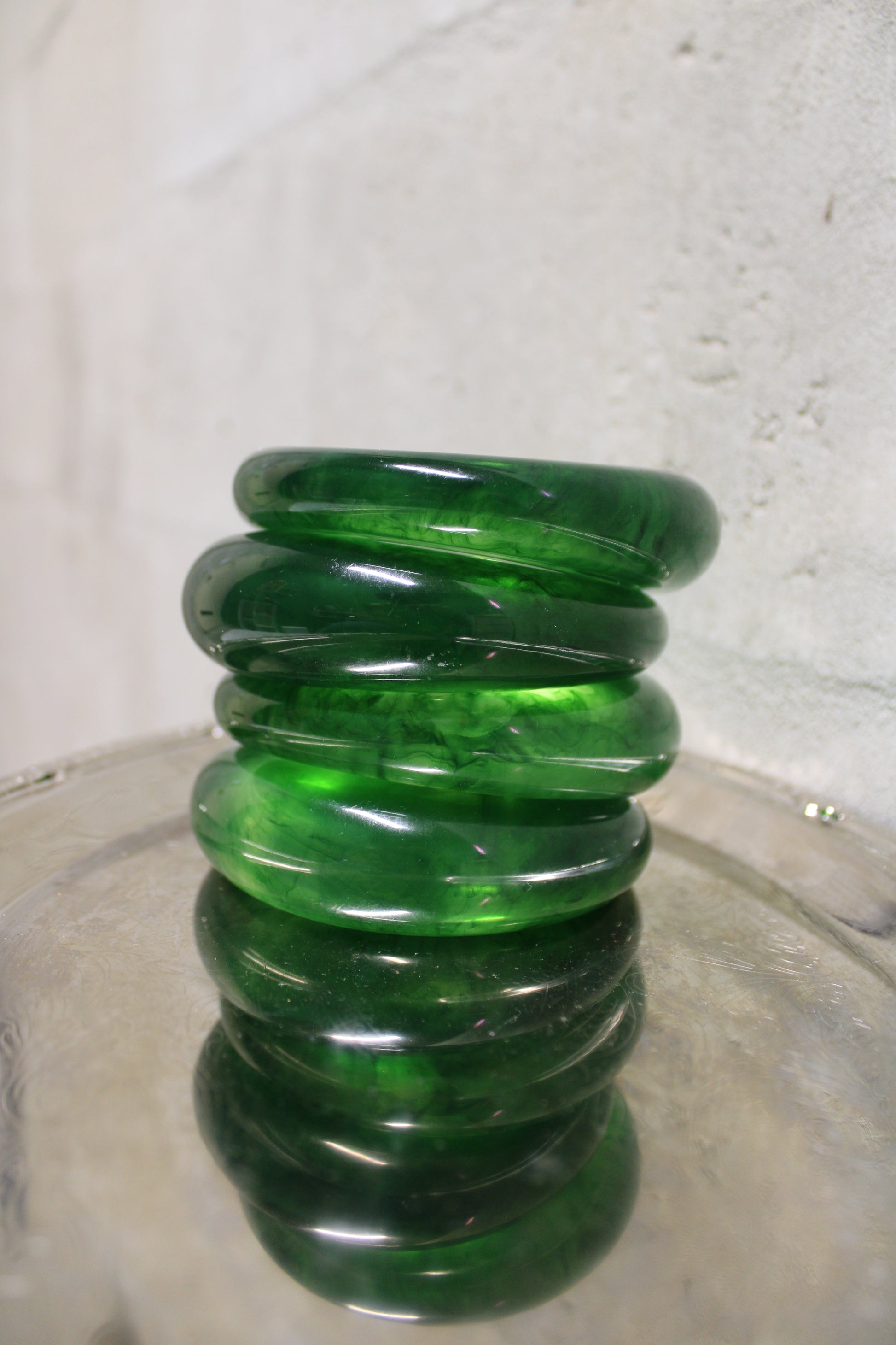 A light, translucent green bangle inspired by the soft shift of color across tropical landscapes.